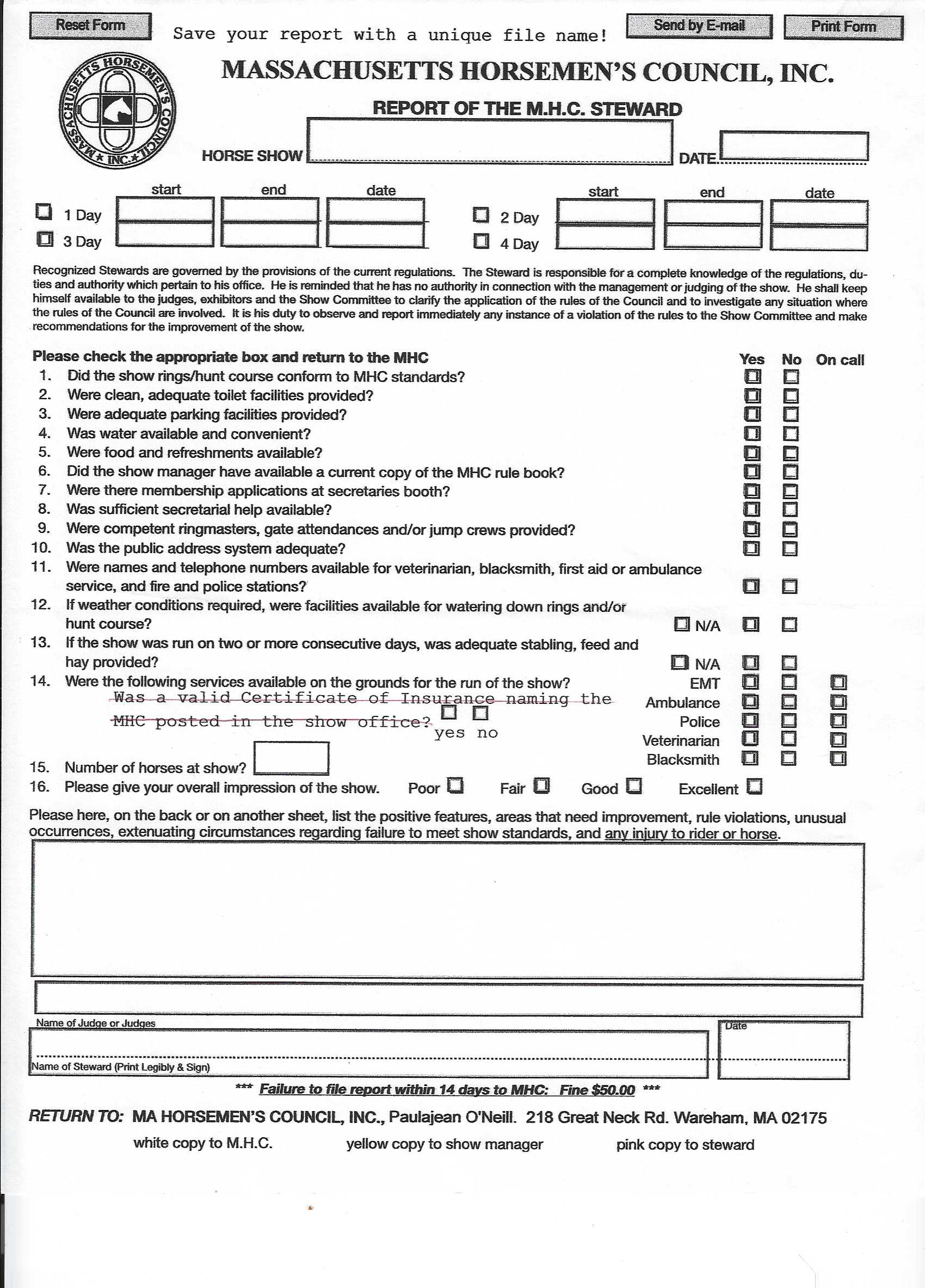 BEFORE THE HORSE SHOW: A copy of this certificate must be postmarked and mailed, or emailed FOURTEEN calendar days prior to the start of the competition to: